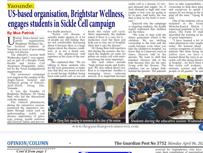 Brightstar Wellness Makes Headlines on the Guardian Post; One of Cameroon’s Number one News Paper